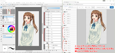 ざっくりと言えば、恐らくこの辺が PSDTool を使うべき大きな理由だと思います。- 表情などのパーツの切り替えがしやすいから